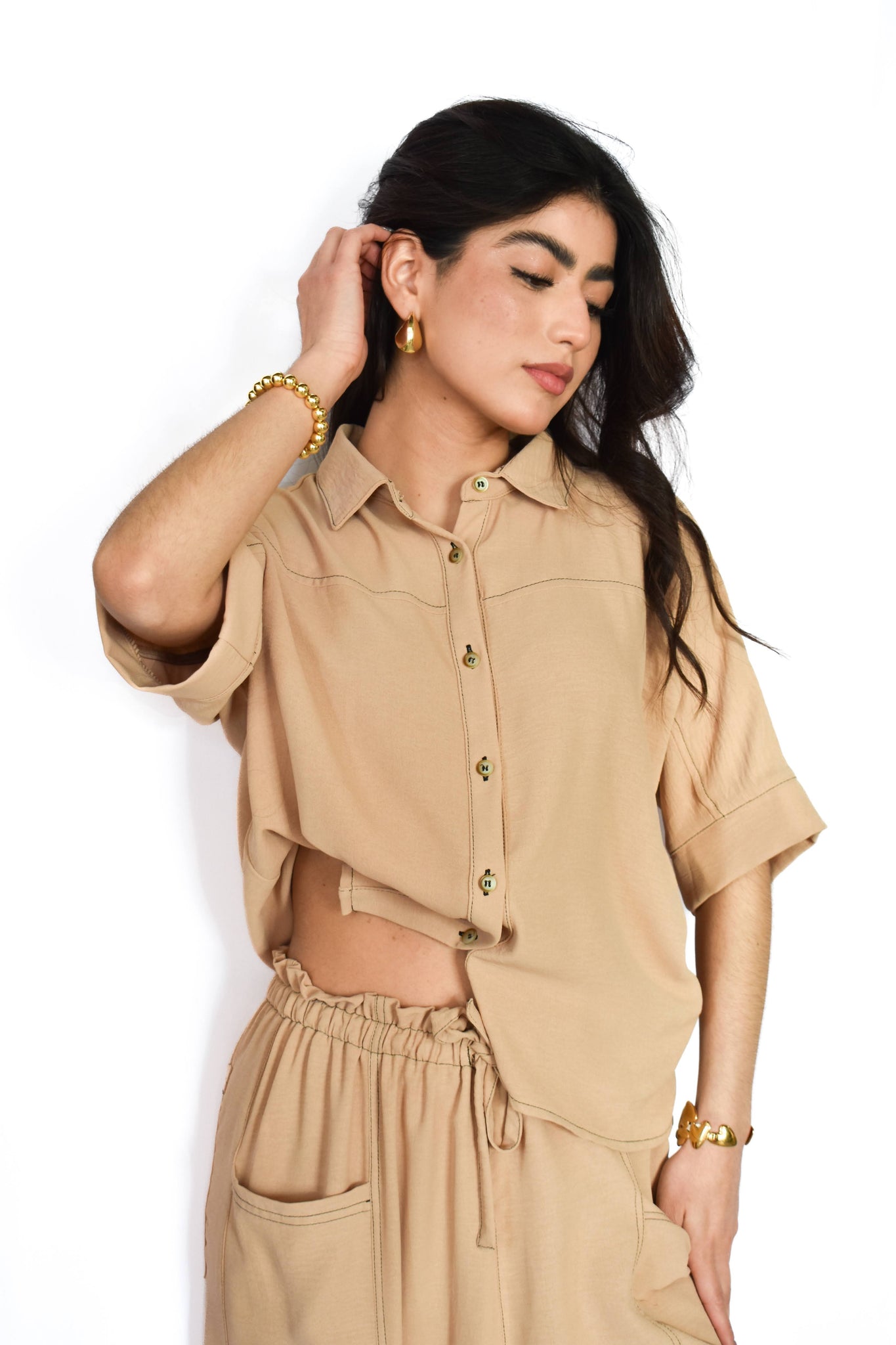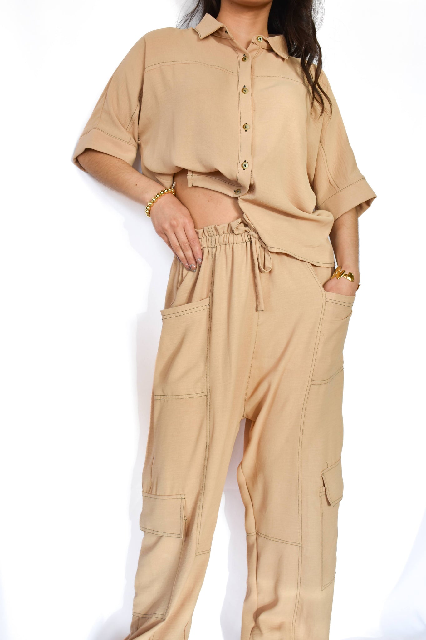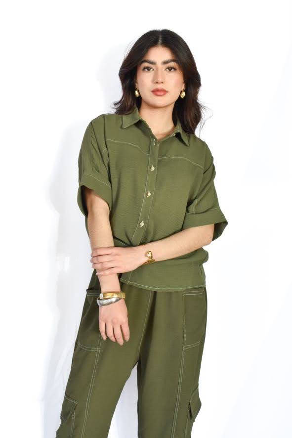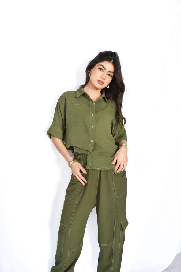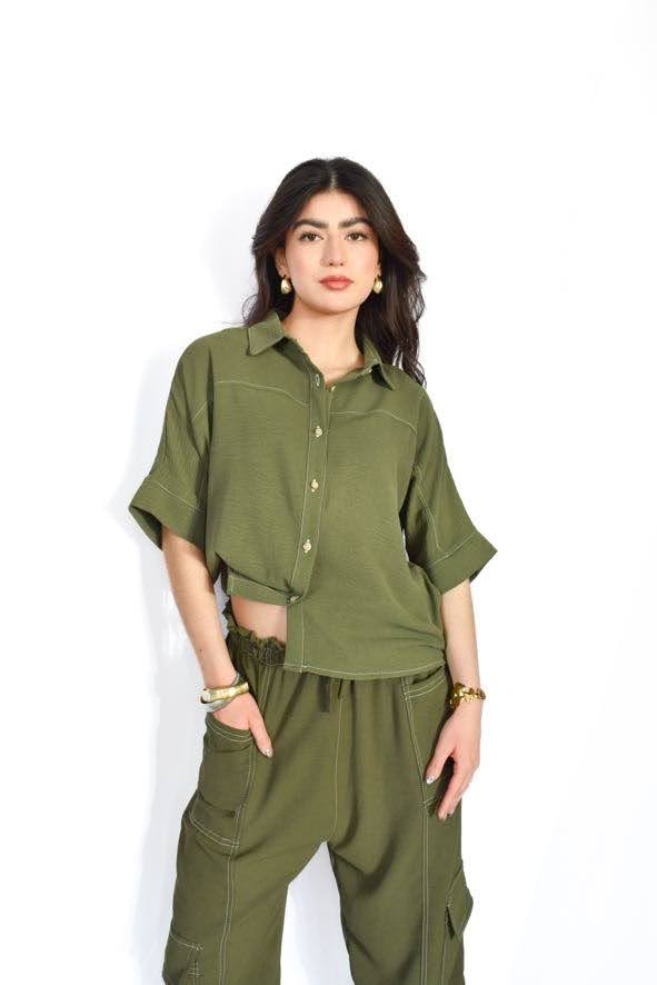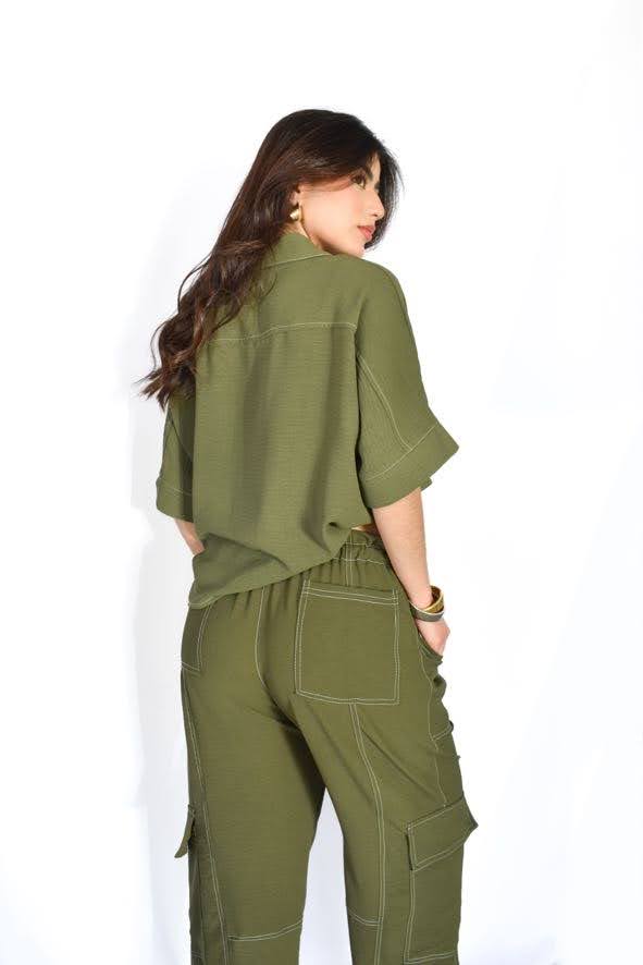 set de 2 piezas con pantalón y blusa con botones