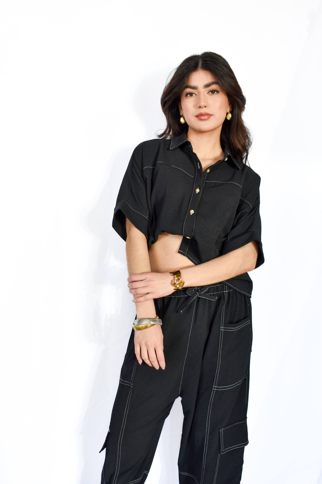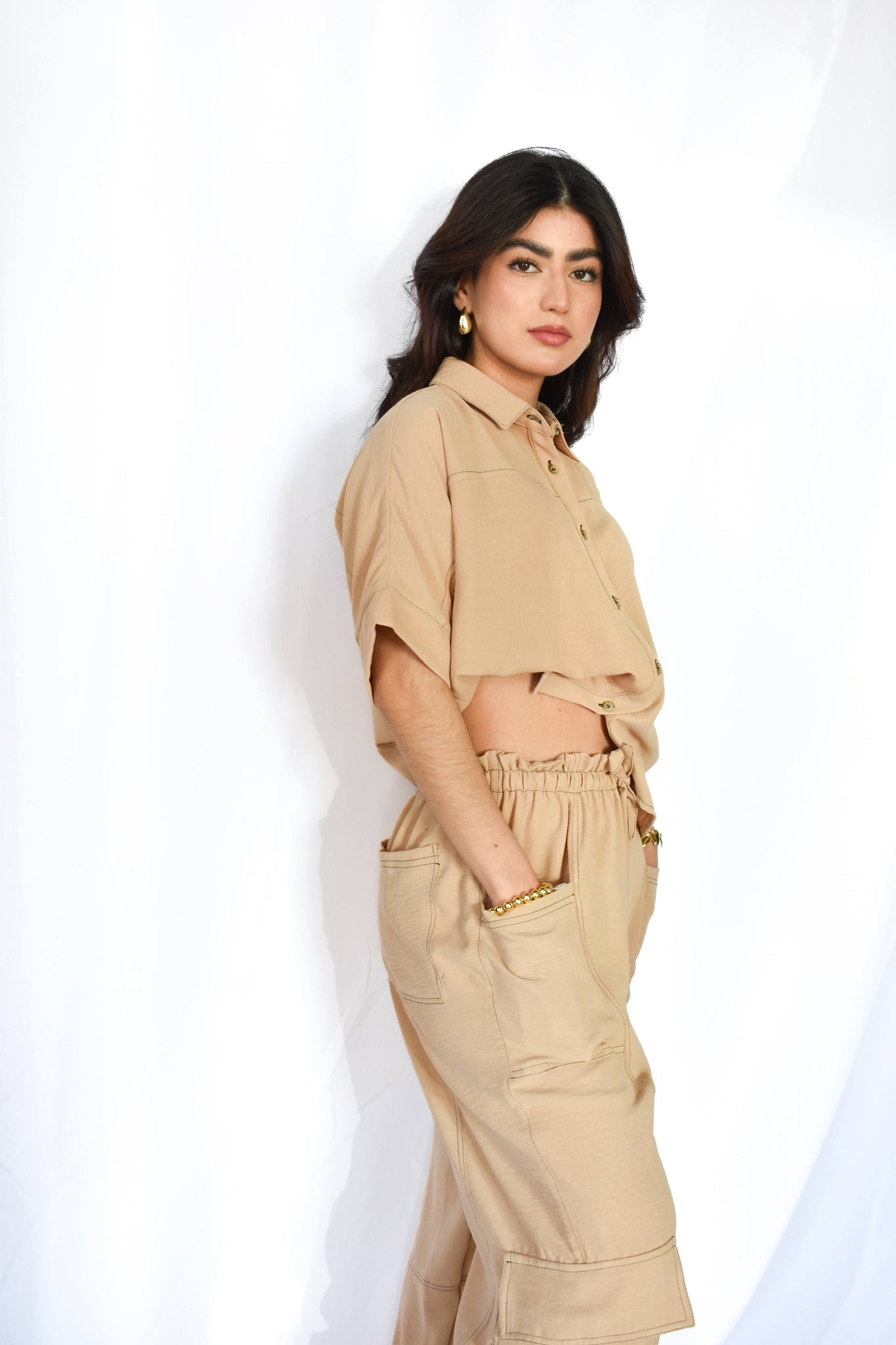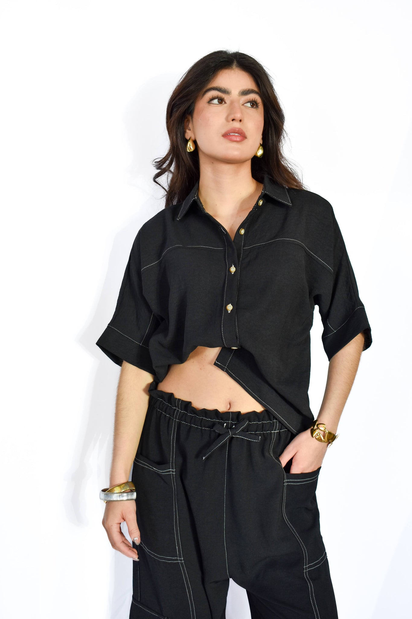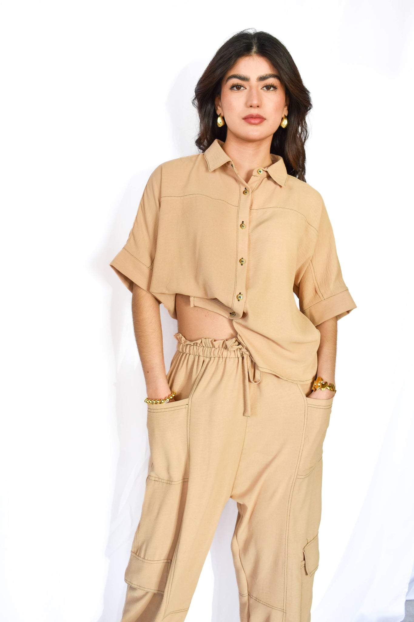 set de 2 piezas con pantalón y blusa con botones