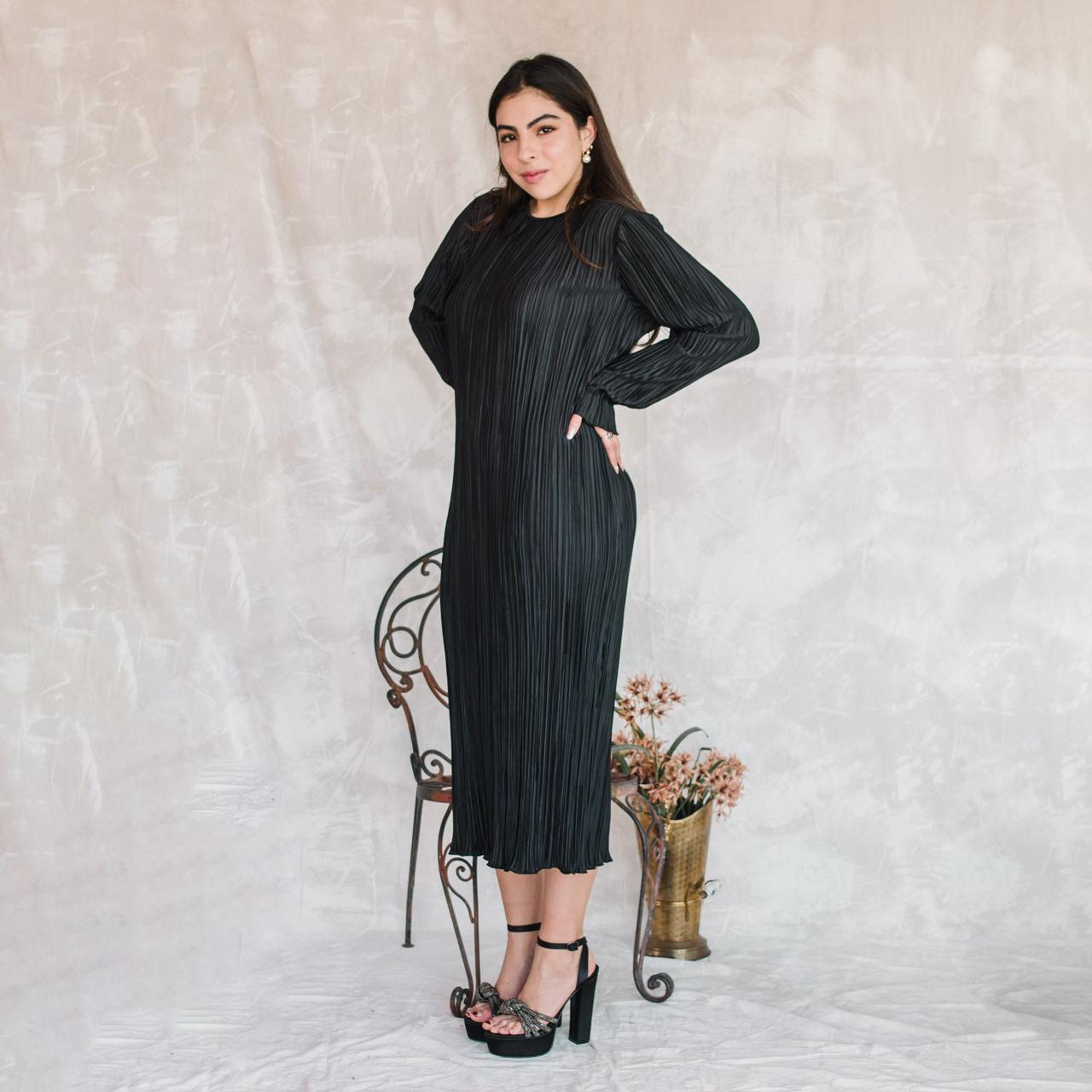 Vestido pliegues negro